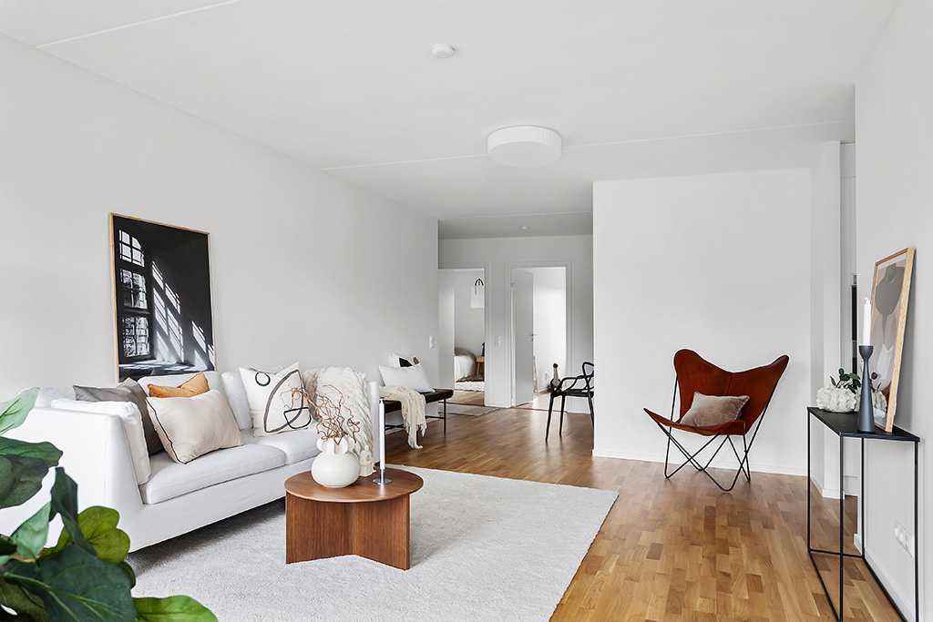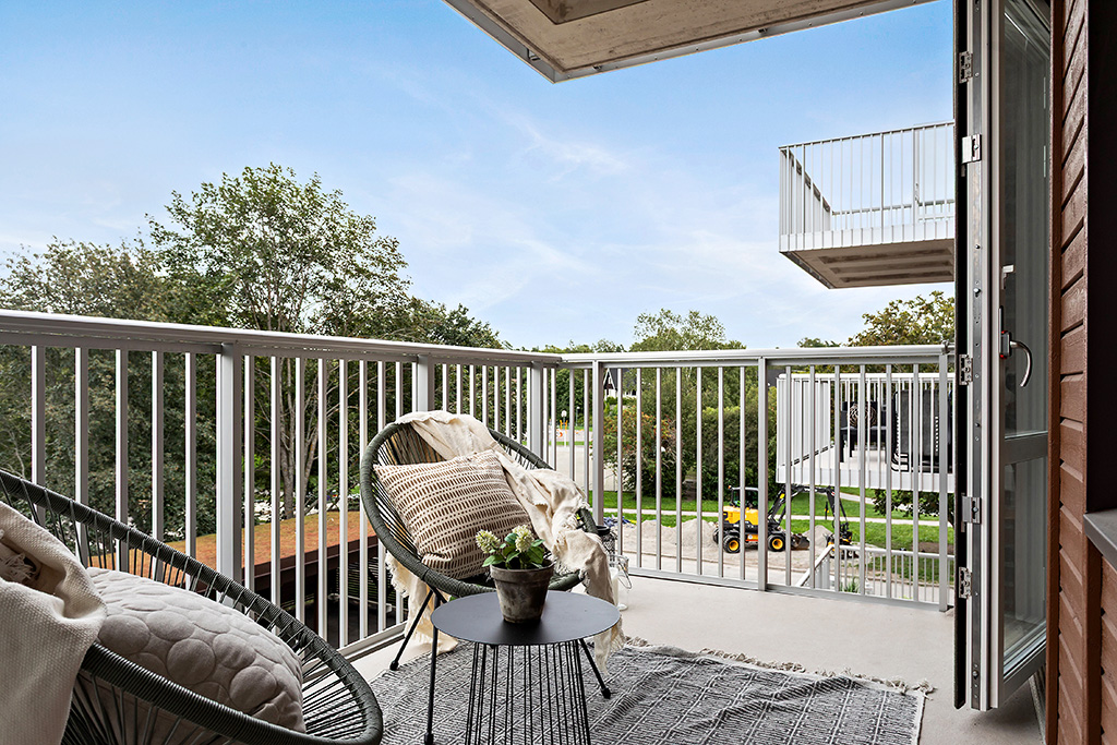 Bli den första att flytta in i denna fina och rymliga 4a med två badrum och två balkonger! Genomgående planlösning med sovrum i fil och ett stort vardagsrum som är delvis öppet mot köket. I anslutning till det ljusa köket finns utrymme för matplatsen. Från köket och vardagsrummet nås den ena av balkongerna (8 kvm) med utsikt över närområdet. Sovrummen är 11, 12 respektive 14 kvm stora och har har skjutdörrsgarderober. Från det största sovrummet nås den andra balkongen (5 kvm) som vetter mot den gemensamma gården. Två ljust inredda badrum med duschmöjligheter varav det större har tvättmaskin/torktumlare, arbetsbänk och väggskåp.