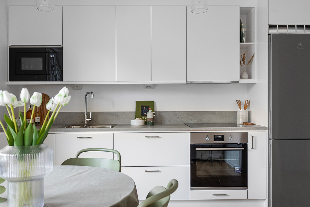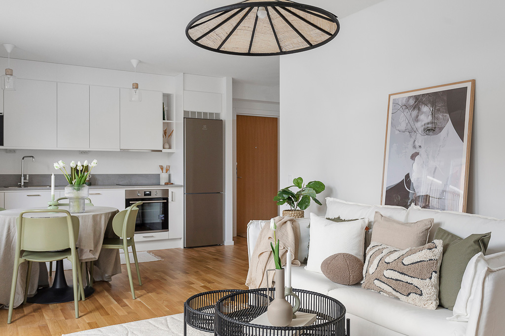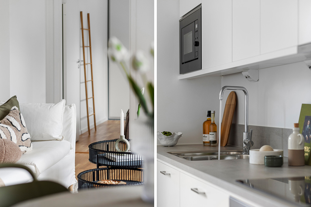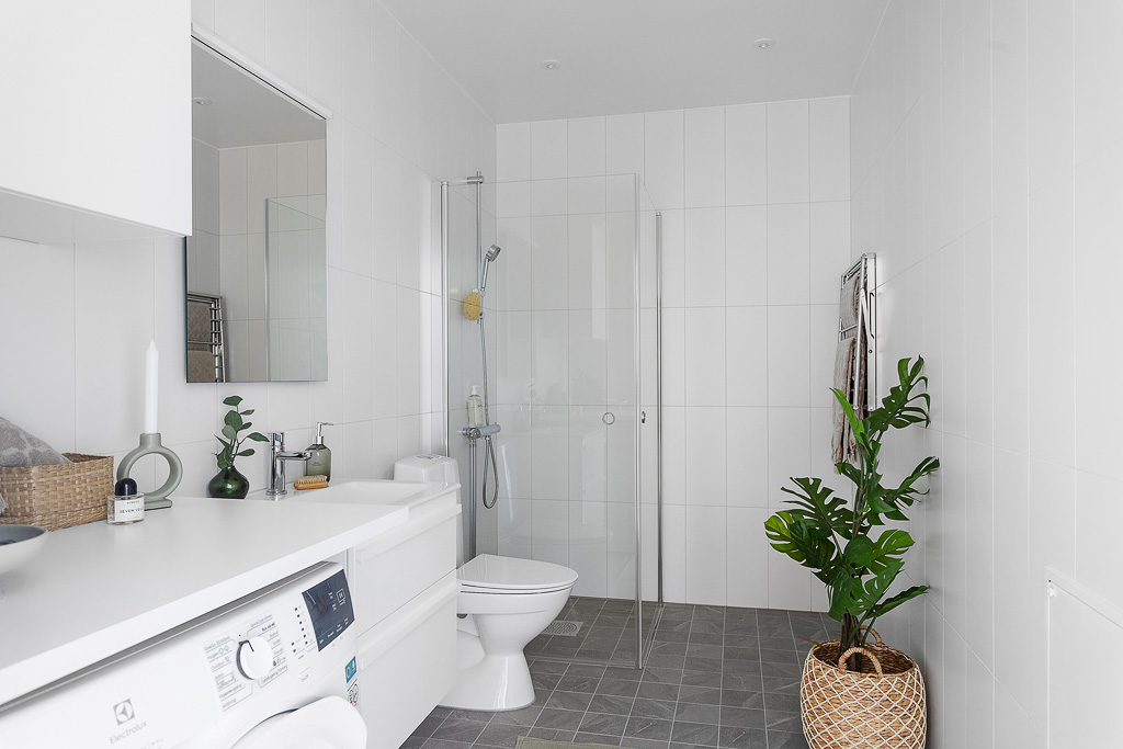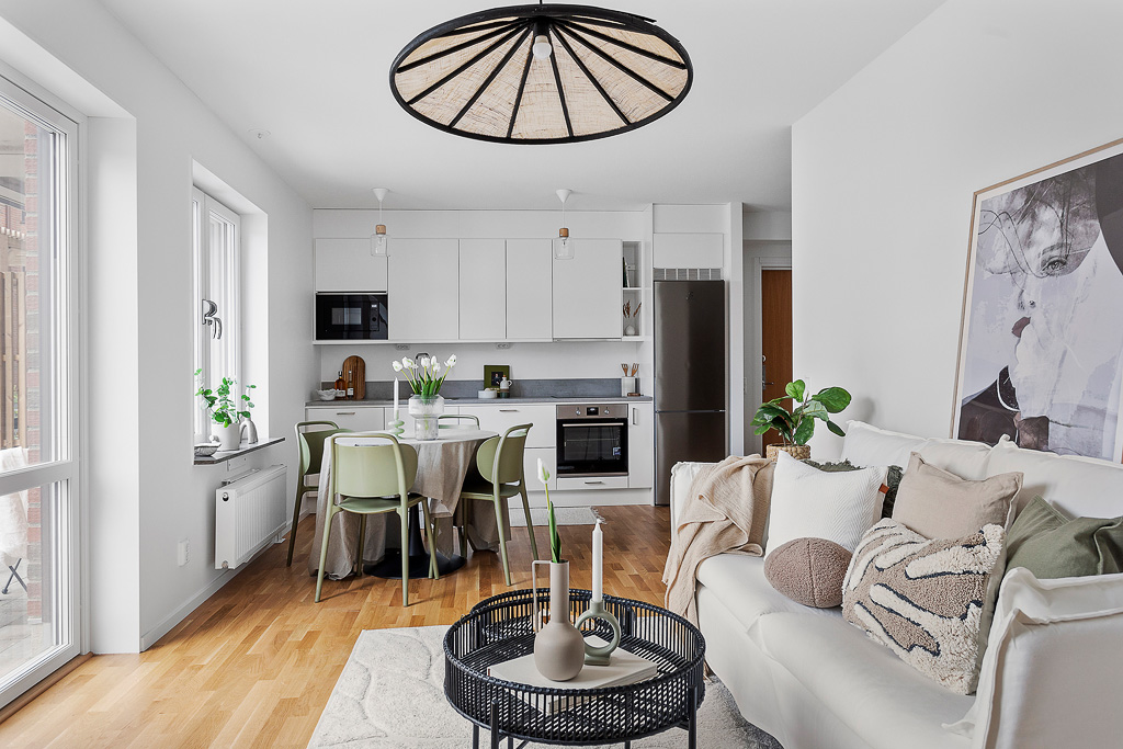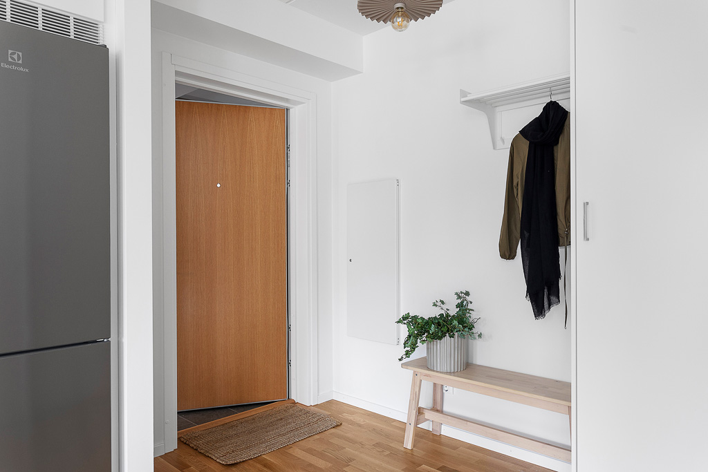 Nyproducerad och mycket fin tvårummare med öppen planlösning och mysig uteplats om ca 14 kvm mot den gemensamma gården! Genomgående fina materialval med ett kök i vitt med gott om förvaring, rymligt ljust badrum och ett sovrum med skjutdörrsgarderob och plats för en stor dubbelsäng. Den stora uteplatsen nås från kök/vardagsrum och har gott om utrymme för utemöblerna. Fint badrum med bl a komfortvärme, kommod, duschhörna och kombimaskin. Vidare finns en bänkskiva, väggskåp och praktisk torkställning. Plats för att hänga av ytterkläderna i hallen där det finns en hatthylla och garderob.