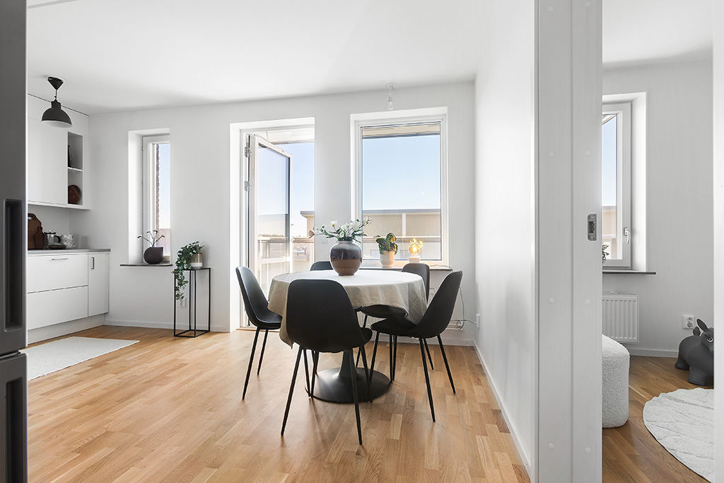 Välkommen till en bostad med unikt läge i Bromstensstaden. I området kommer inga andra bostadsrättshus byggas med så höga våningsplan.