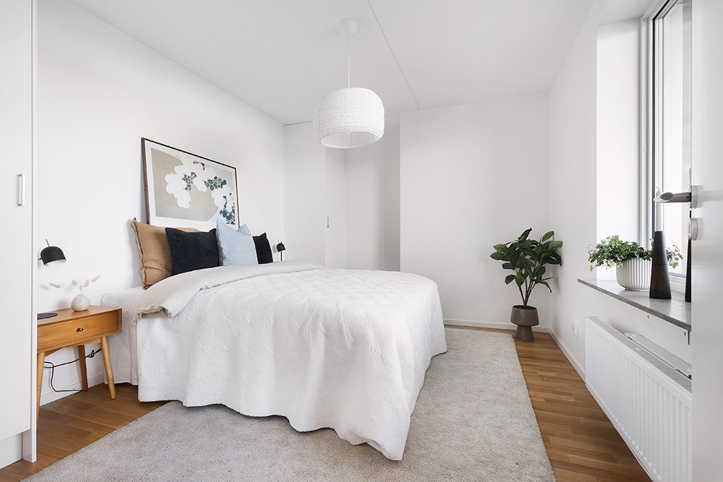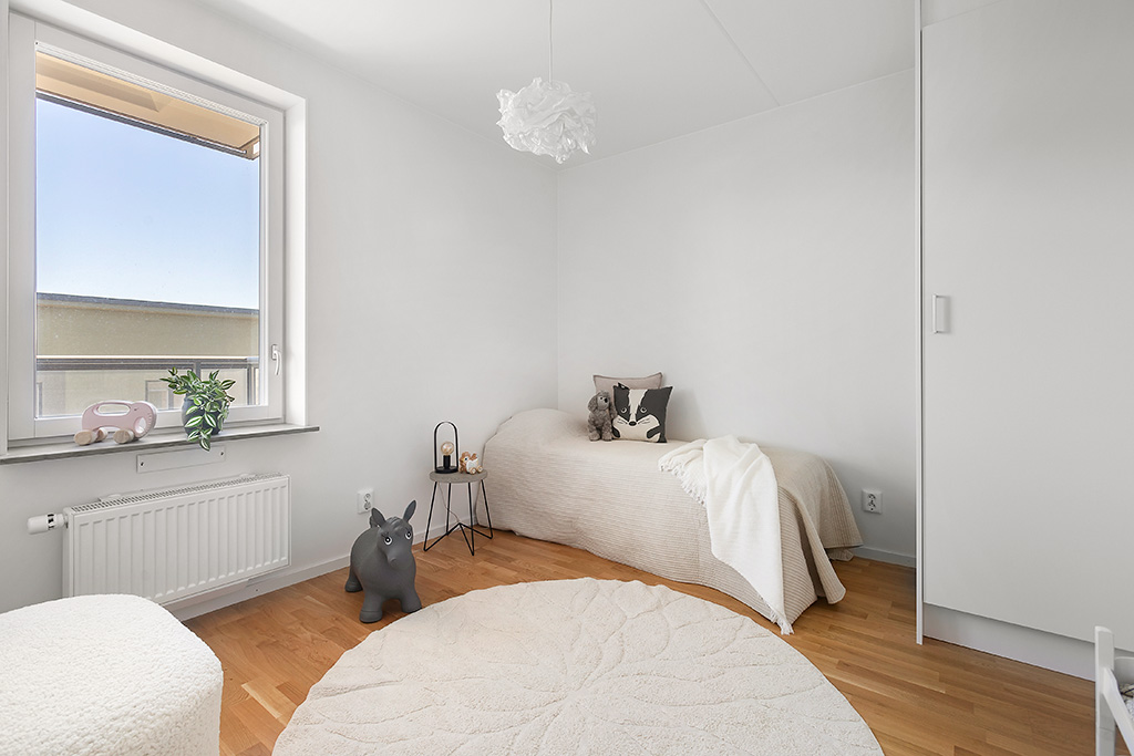 Sovrummen ligger i avskilda lägen, det största har plats för dubbelsäng och här finns garderob samt linneförvaring. Det andra sovrummet är perfekt för barn, gäster eller kontor. Även här finns garderob.
