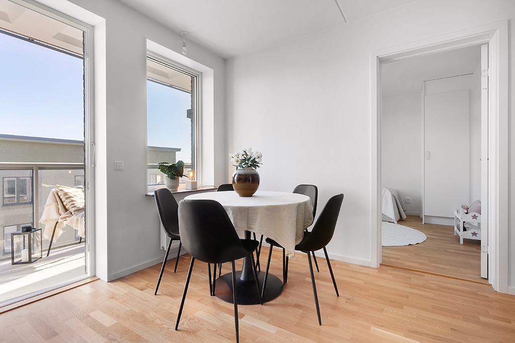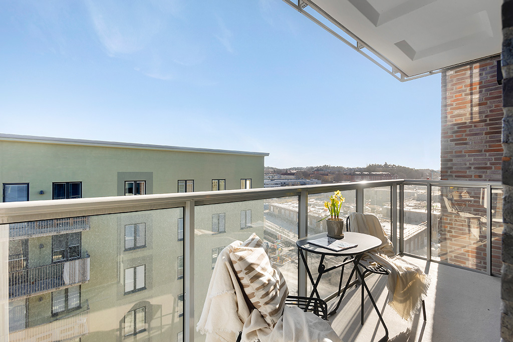 Unik och högt belägen genomgående trea med två balkonger! Husdelen där denna bostad ligger är unik i sitt slag och det kommer inte byggas bostadsrätter i lika högt läge i hela Bromstensstaden. Härifrån har man utsikt i två väderstreck och från balkongerna har man sol, eller skugga om det föredras, i stort sett hela dagen.